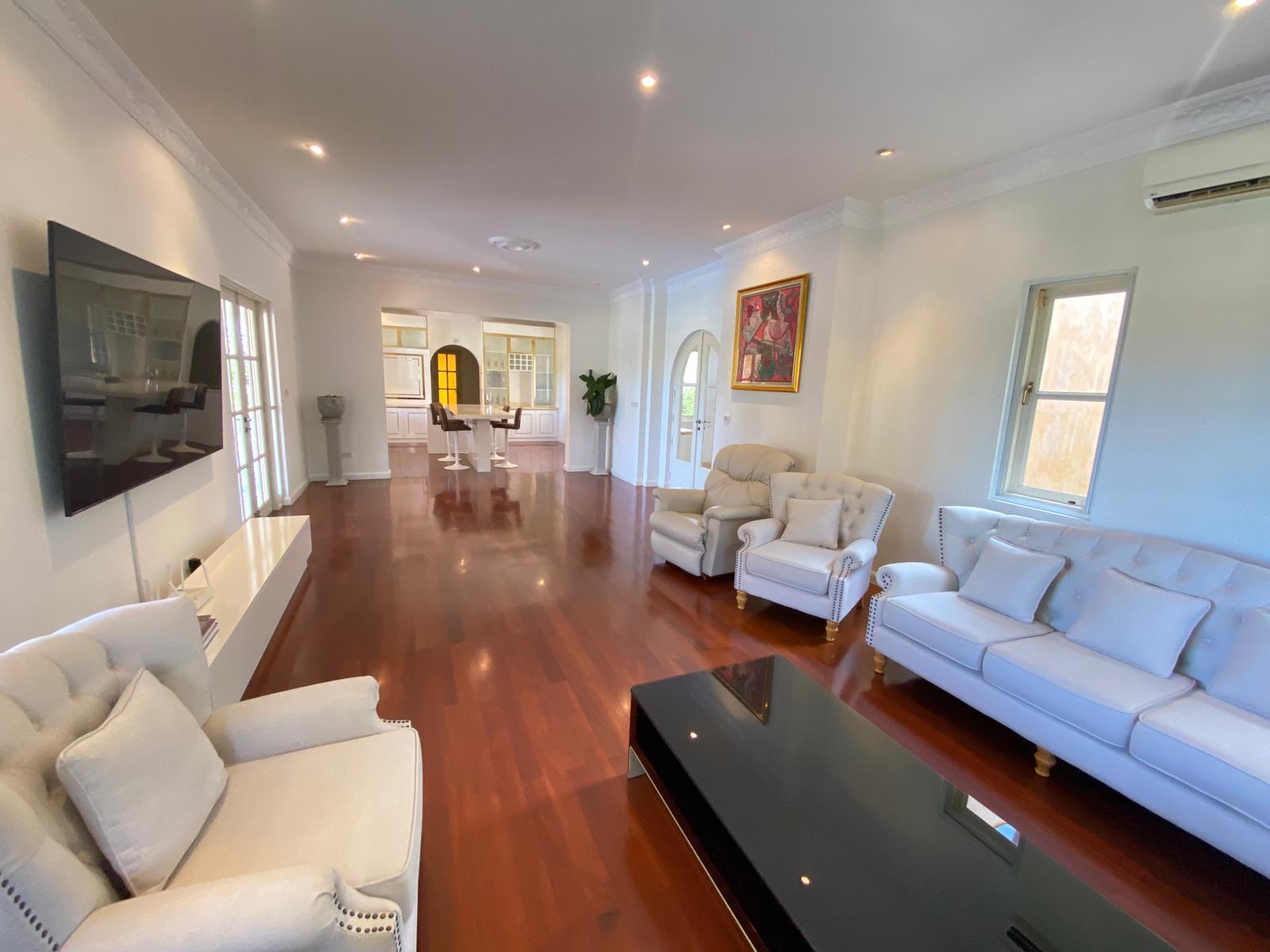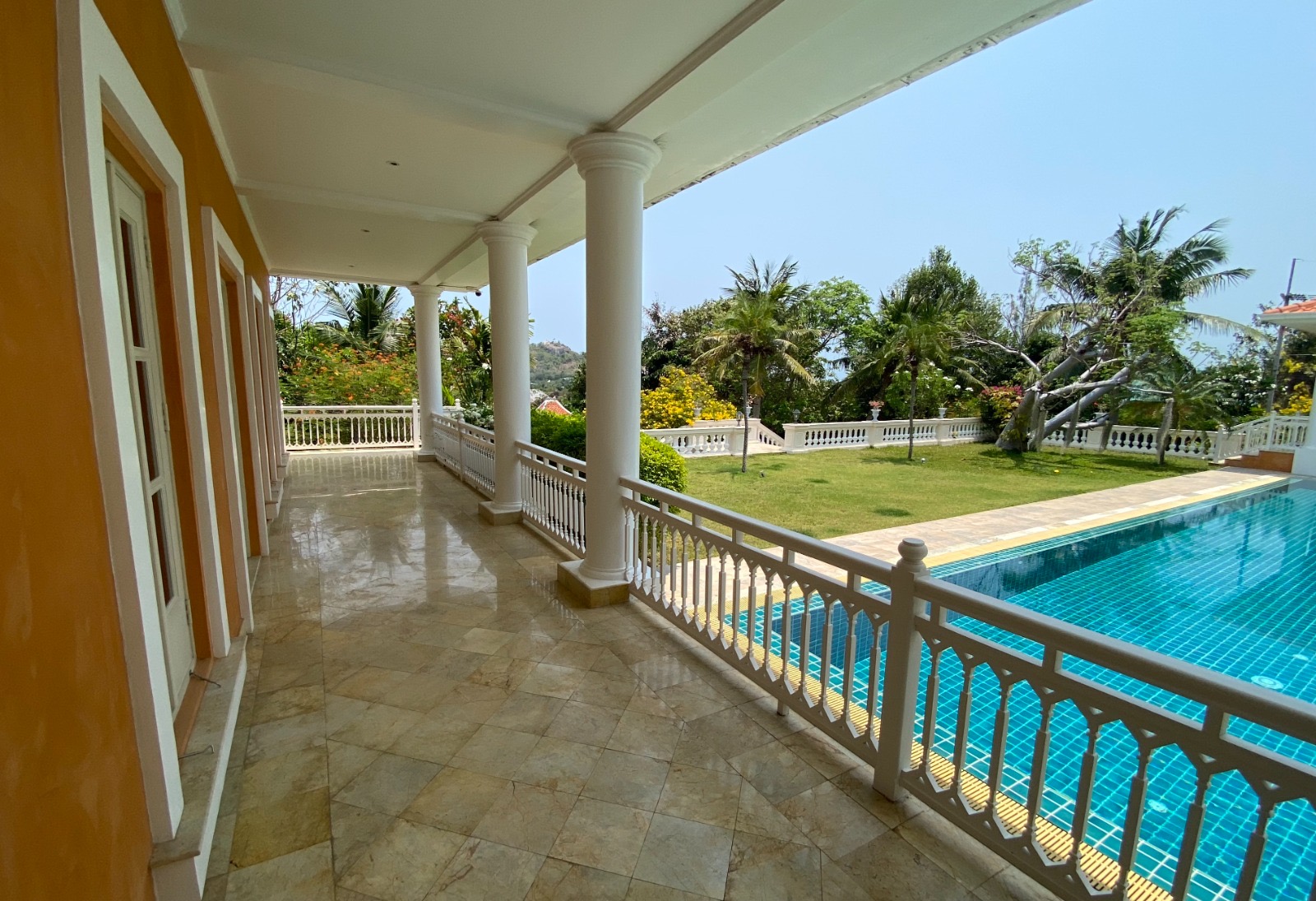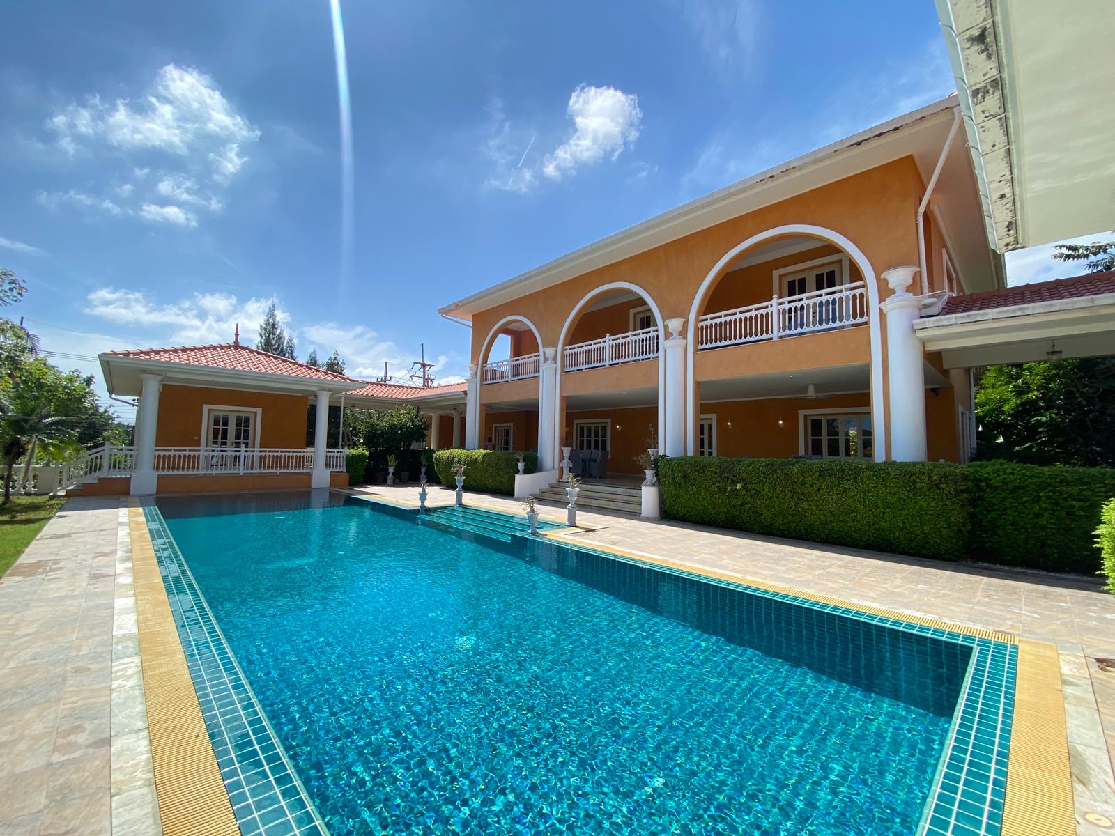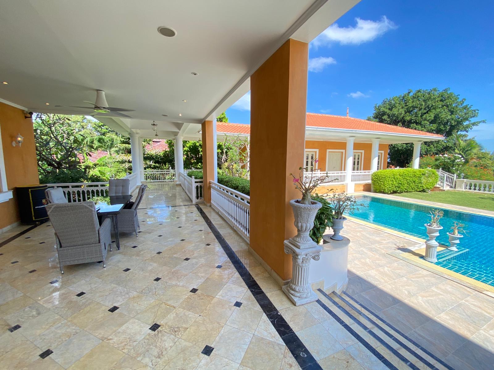 This expansive 7-bedroom, 7-bathroom residence sits on 3,200 sqm of beautifully maintained grounds in a quiet hillside neighborhood. Recently renovated and fully furnished, it offers generous indoor-outdoor living with a large balcony overlooking the swimming pool and a newly built sauna. Conveniently located just minutes from BluPort, the beach, and key amenities.