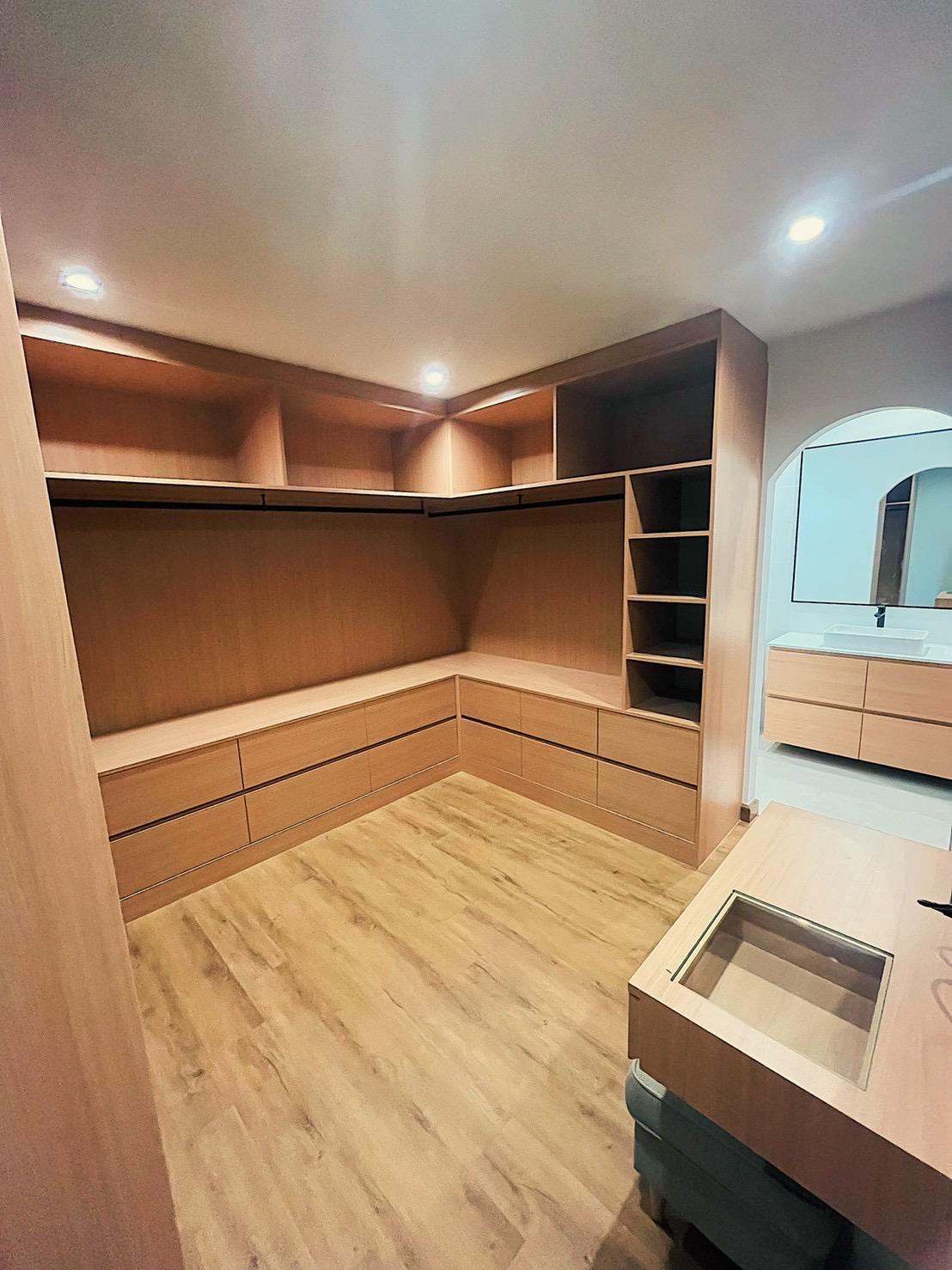 - Built-in bathroom cabinets